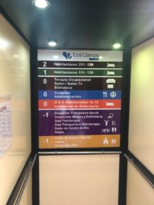 El pasado año iniciamos un Proyecto en colaboración con el Departamento de Innovación de la Universidad Francisco de Vitoria. Les pedimos a los alumnos de Grado en Publicidad la realización de propuestas para cambiar la señalética del Centro, formándoles previamente sobre los criterios y necesidades que deberían tener en cuenta. Una vez seleccionada por el Centro la propuesta más adecuada, basada en criterios profesionales de mejora de la información ofrecida, adaptada a las capacidades de los usuarios de Los Llanos Vital, continuamos un trabajo conjunto durante algunos meses. El objetivo era que ese primer proyecto de los alumnos se hiciera realidad mejorando sustancialmente la información que la señalética ofrece a nuestros mayores para ubicarse en el Centro y dirigirse a donde quieren ir en cada momento.