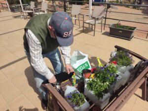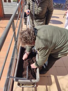 Nuestro jardín es también un espacio vivo. Y para que eso sea así nuestros mayores se implican en su cuidado. Este año hemos querido embellecer la terraza a la que accedemos desde el salón, ¡y vaya si lo hemos hecho!