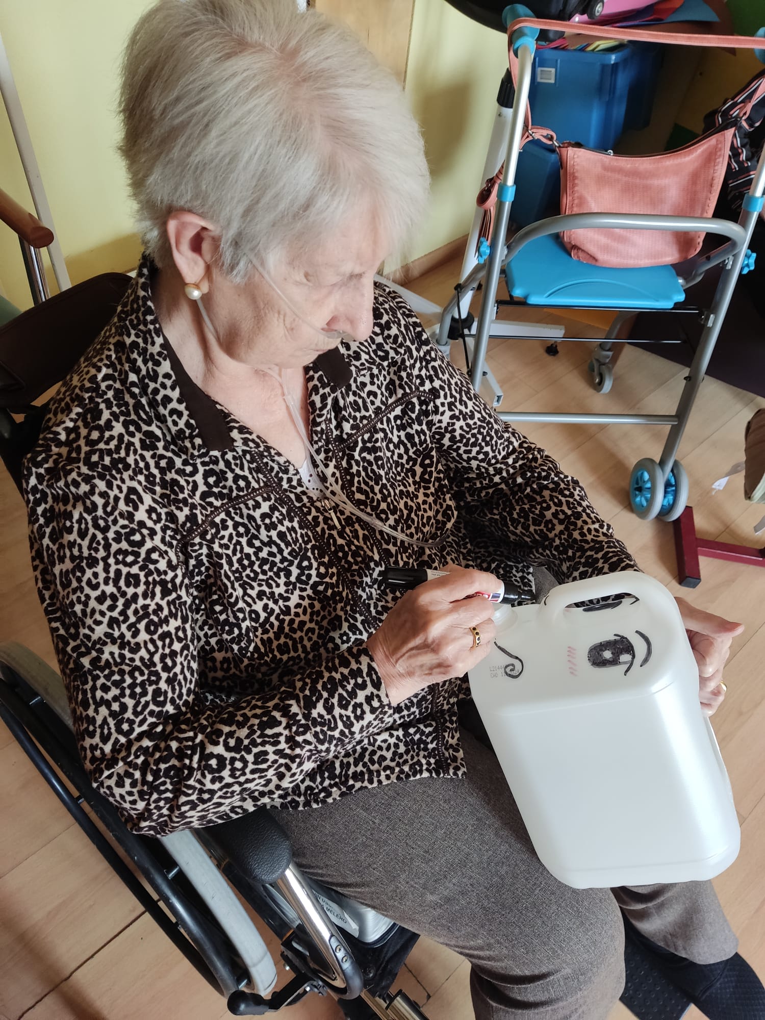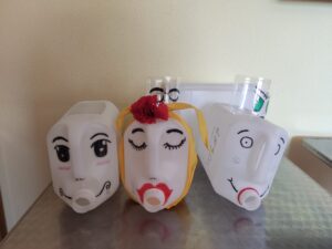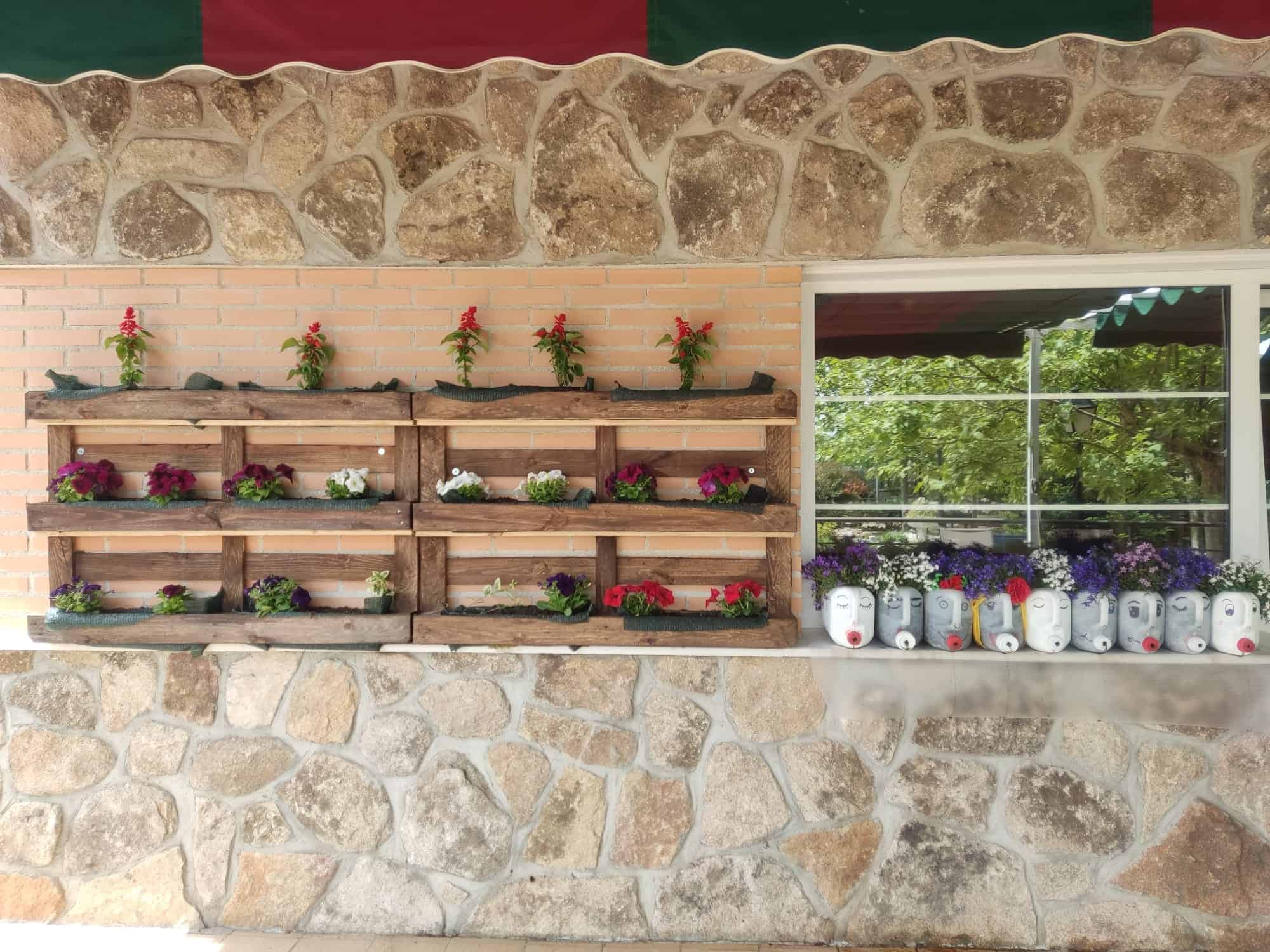 Por otro lado, con unos bidones de limpieza hicimos unas preciosas macetas que inundan el jardín de alegría.
