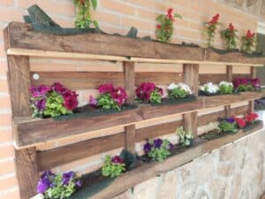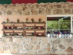 En este sentido, para embellecer nuestro jardín decidimos dar una segunda vida a algunos materiales. De este modo, con dos palés viejos creamos un precioso espacio para las macetas teniendo como resultado un precioso jardín vertical que llenará de flores el tiempo que nuestros mayores estén en él.