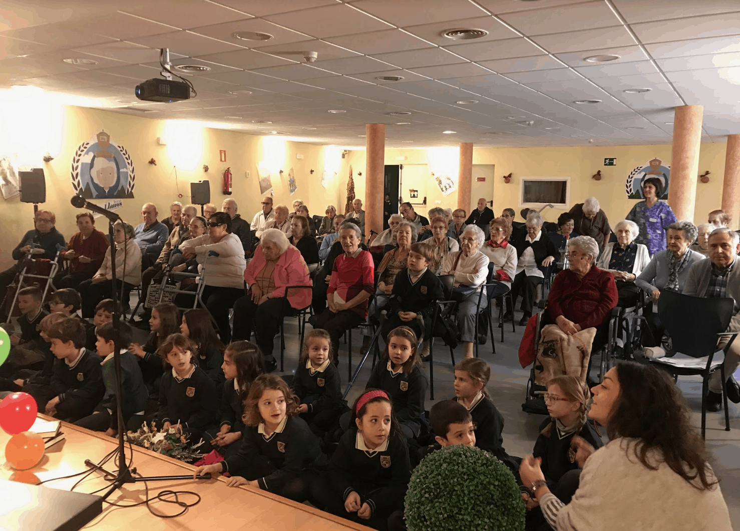 El recital ha estado amenizado por unos músicos muy conocidos entre nuestros residentes: Ramón, al piano y Juan, con su armónica nos han acompañado durante todo el acto. Mayores y pequeños han entonado canciones tradicionales y villancicos.