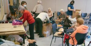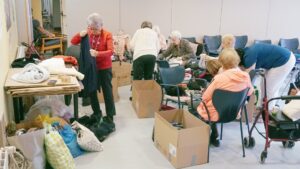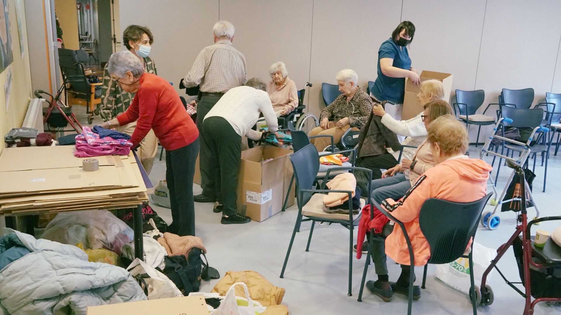 Una vez recogidas todas las donaciones que llegaron al Centro, los mayores, como podéis ver en las imágenes, fueron los encargados de organizar todas las prendas. Las revisaron, clasificaron y ordenaron en diferentes cajas que posteriormente entregamos a un grupo de voluntarios que se dirigía a Ucrania para hacer entrega de ellas.