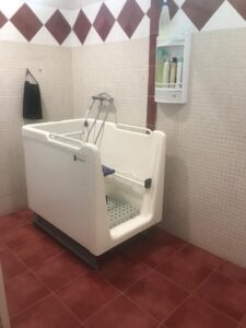 Dentro de las obras que hemos realizado en los últimos meses, destaca la apertura de un acceso desde el gimnasio a unos aseos en los que se ha instalado una cabina de ducha. De este modo, en el caso de tener positivos en COVID-19 se utilizará como sector rojo. En esta zona hay acceso a baños, salón y patio exterior. Todo ello independiente del resto de las áreas del Centro.